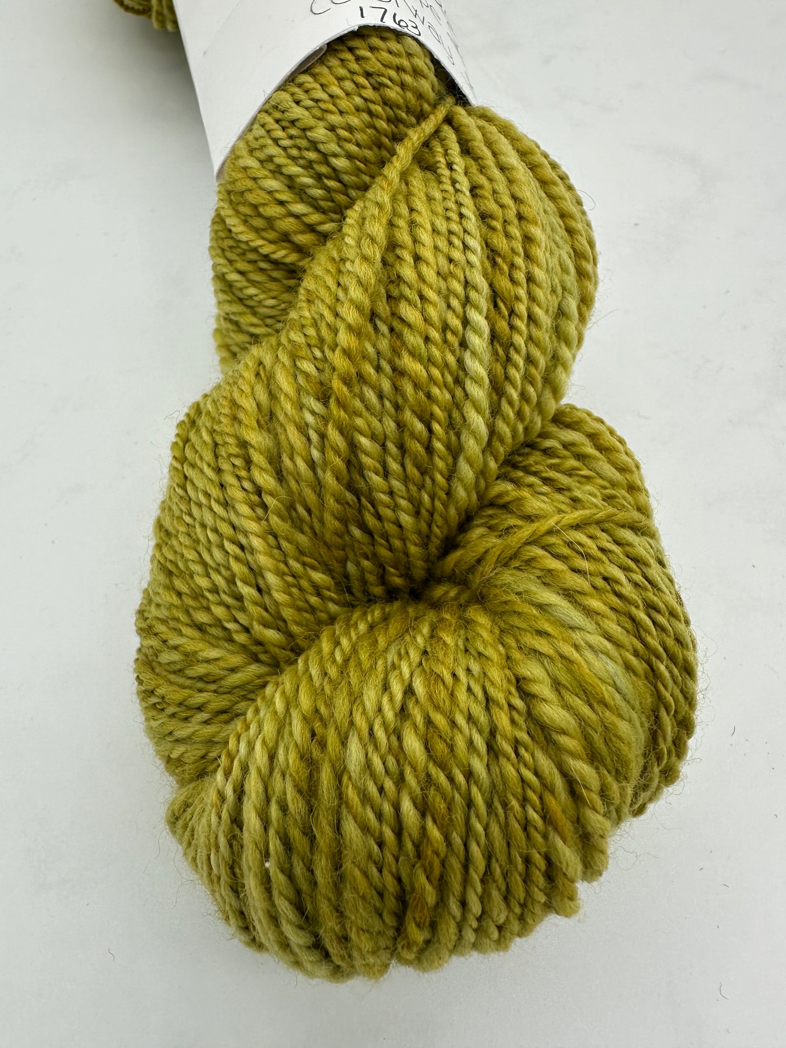 A perfect name for this skein of greenish yellows. 240 yards of DK weight yarn from Polwarth/wool.
